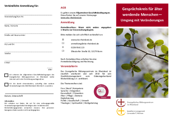 Der Gesprächskreis findet in Kooperation mit dem Quartiersmanagement Lannedorf/Mehlem statt.